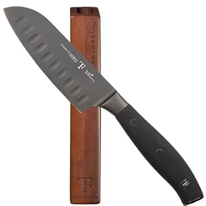 Discount Tyler Florence Titanium 5-Inch Santoku Knife with Magnetic Individual Wood Knife Block