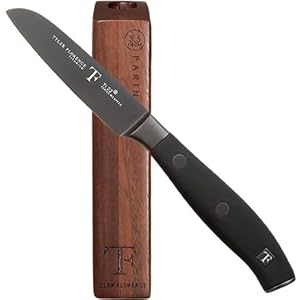 The Tyler Florence Titanium 3-1/2-inch Paring Knife is a top of the range knife – it provides solid development and a titanium-plated steel blade that makes it stick, chemical and corrosion-resistant. Titanium is more difficult than stainless steel with the very best strength-to-weight ratio of any metal. This knife has a tampered bolster with totally exposed blade facet, which gives top performance and optimal sharpening. It also has an ergonomic handle with TPR coating that provides a comfortable and certain grip. Includes custom measurement knife block made of Acacia timber. Embedded magnets enable particular person knife block to stick to other blocks in the Tyler Florence Titanium Collection.